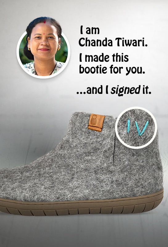 We are committed to fair trade and fair employment. It takes half a day to create one pair of slippers. When you buy Baabushka slippers, you too are supporting high-paying, fair trade jobs for Nepali women.