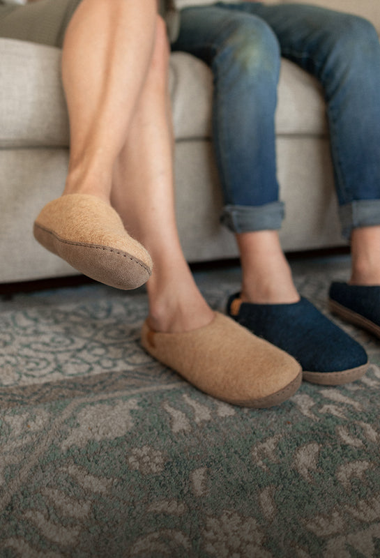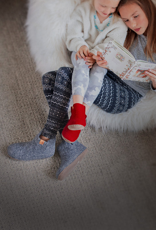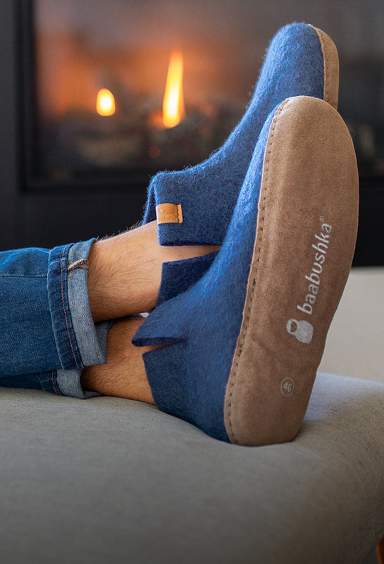 Baabushka slippers and booties are not manufactured in a factory. Made by hand with traditional wool felting techniques that use only soap and water, the result is modern, comfortable footwear that is both lightweight and durable.
