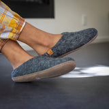Wool Slipper with Leather Sole - Dark Gray