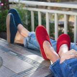 Wool Slipper with Rubber Sole and Arch Support - Red