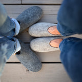 Baabushka's footwear is handmade by artisans living in the beautiful Kathmandu Valley of Nepal. Using sheep’s wool, water, and organic soap, our artisans use traditional felt crafting techniques handed down through generations. The result is soft yet durable footwear. The felted wool is gentle on your feet —naturally insulating, yet allowing your skin to breathe— so you can enjoy wearing your Baabushka footwear year-round.