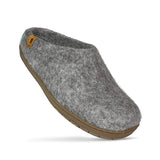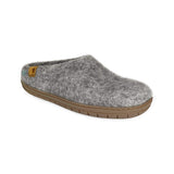 Wool Slipper with Rubber Sole and Arch Support - Light Gray